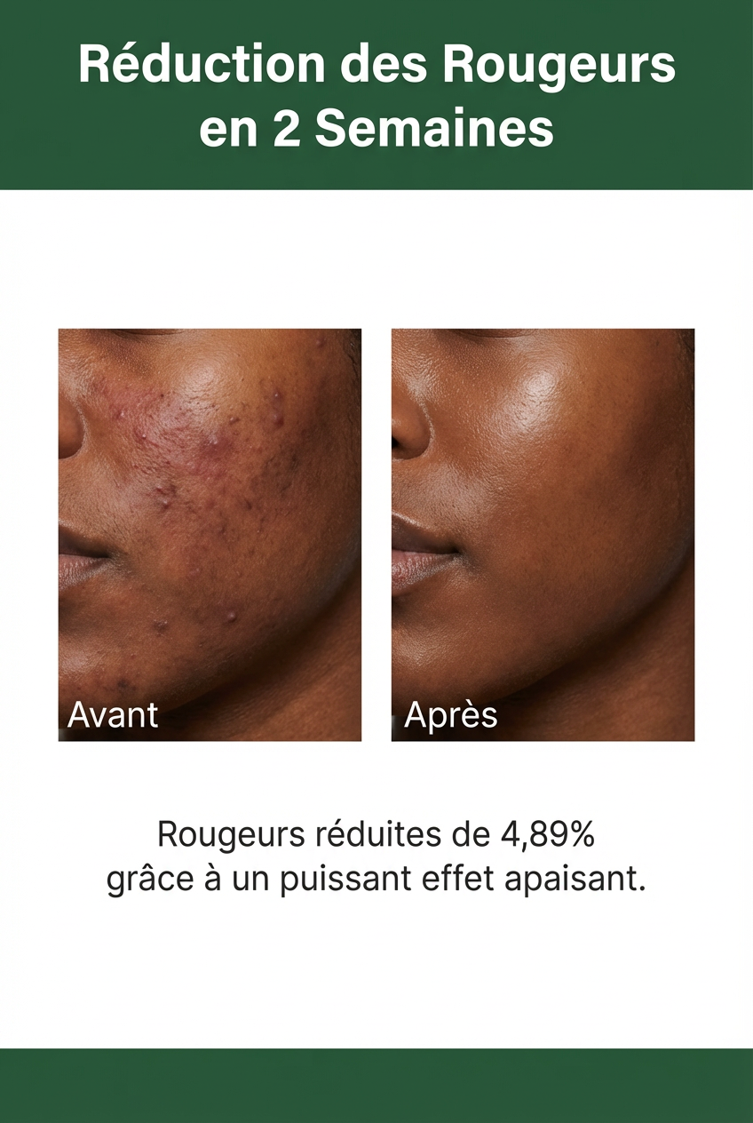 - Action Anti-Taches : En apaisant l’inflammation à la source, il aide à prévenir l’apparition des taches d’hyperpigmentation après un bouton.