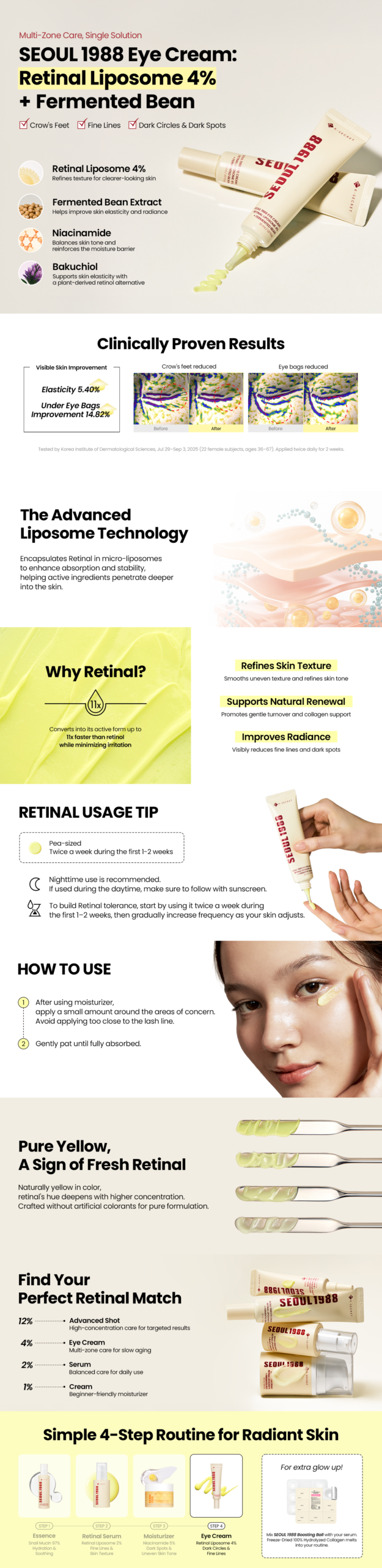 K-Secret – Crème pour les yeux – SEOUL 1988 Rétinal Liposome 4% + fève fermentée – 30ml