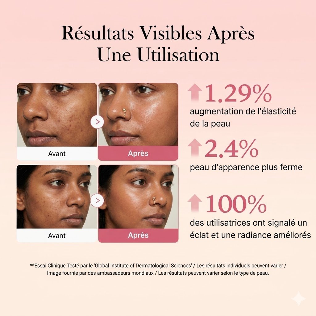 - Collagène Lyophilisé : Une technologie qui préserve la pureté du collagène pour une efficacité maximale sur l’élasticité et le relâchement cutané.